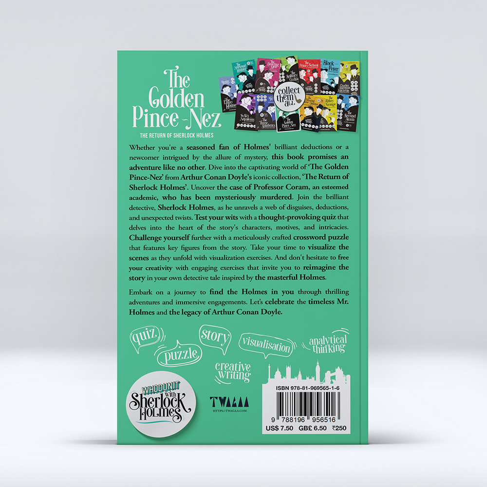 Whether you count yourself a seasoned aficionado of Holmes’ ingenious deductions or an intrigued newcomer captivated by the allure of enigma, the “WHODUNIT with Sherlock Holmes” series assures an escapade like no other. Celebrate the undying legacy of Sherlock Holmes and the captivating story meticulously crafted by Arthur Conan Doyle, followed by the key highlights, learnings, quizzes, puzzles, analysis, and visualization exercises for each story. The WHODUNIT series transcends the boundary of being a mere narrative; and is an invitation to explore, learn, and fabricate within the realm of one of literature’s most iconic personas.