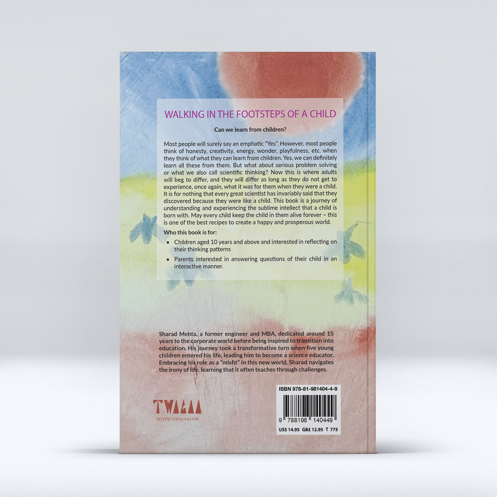 ‘Walking In The Footsteps Of A Child’ explores how children’s innate intellect inspires creativity, scientific thinking, and problem-solving. This book is a journey of understanding and experiencing the sublime intellect that a child is born with.