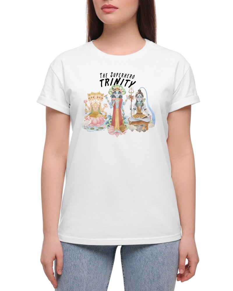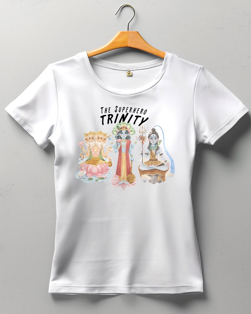 Superhero Trinity, the “Divine Force”, comprises of Brahma, Vishnu, and Shiva, representing the cosmic cycles of creation, preservation, and destruction, serving as the ultimate power shaping the universe in Hindu cosmology.