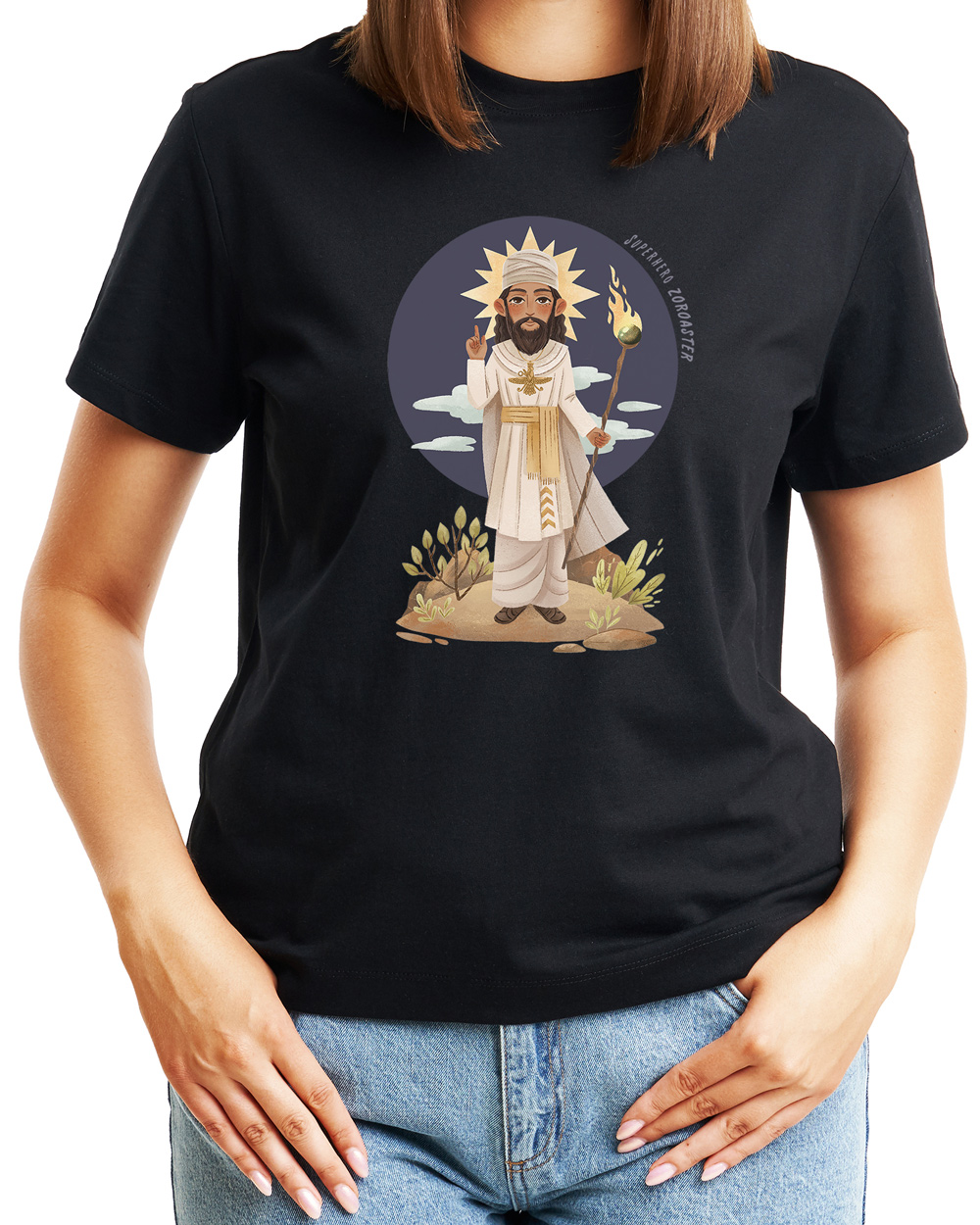 Superhero Zoroaster, the “Visionary Prophet”, stands as a foundational figure in Zoroastrianism, promoting the principles of cosmic dualism, moral order, and the pursuit of truth and righteousness in the eternal struggle between Ahura Mazda and Angra Mainyu.